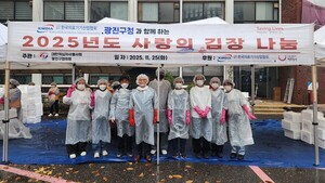 [의학신문·일간보사=이승덕 기자]한국건강증진개발원(원장 김헌주)은 지역사회 상생과 나눔문화 확산을 위해 지난 19일 개최된 ‘제3회 광진 사랑의 김장축제’에 후원기관으로 참여했다.‘제3회 광진 사랑의 김장축제’는 광진복지재단이 주최하고, 개발원을 비롯한 지역 내 공공기관 및 기업이 함께 후원한 행사로, 지역주민과 기관 임직원 등이 총 1만 1420kg의 김장김치를 담가 광진구 내 취약계층에게 전달했다.특히 이번 행사에는 김헌주 원장을 비롯해 경영지원실장, 정책개발실장 등 8명의 주요 보직자가 참여해 총 27명의 임직원이 함께 김치