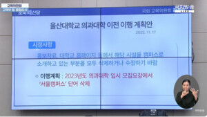 [의학신문·일간보사=이승덕 기자]울산의대가 수도권협력병원에서 수업을 진행하는 소위 ‘무늬만 지방의대’의 대표사례로 지적됐다.국회 교육위원회 강경숙 의원(조국혁신당)은 24일 교육위 국정감사 종합감사에서 교육부 질의를 통해 이같이 밝혔다.강경숙 의원은 “수도권협력 병원에서 수업하는 문의만 지방 의대 이야기를 다루고자 한다. 교육부가 2021년부터 시정명령을 통해 지방 분교에서 수업을 늘리도록 요구했는데, 일부 의대는 세 번째 시정요구를 이행하지 않고 있다”며 “윤석열 정부는 지역의료를 살리기 위해 의대증원이 필요하다는 입장을 누차 강