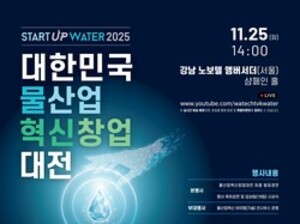 [의학신문·일간보사=이정윤 기자] 기후에너지환경부(장관 김성환)와 한국수자원공사(사장 윤석대)는 물산업을 우리나라의 새로운 성장동력으로 성장시킬 ‘혁신형 고성장 기업(유니콘)’을 발굴하기 위해 11월 25일 노보텔앰버서더호텔(서울 강남구 소재)에서 ‘대한민국 물산업 혁신 창업대전 2025’ 최종 경연을 개최한다고 밝혔다.기후위기 심화 등으로 인해 물 관리의 중요성이 커지면서 전세계 물시장 규모는 2025년 1,485조 원에 이를 것으로 전망된다. 매년 2.9%씩 지속 성장하는 이 시장을 견인하는 것은 △지능형 기반시설(스마트 인프라