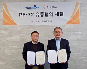 [의학신문·일간보사=김영주 기자]혁신 바이오 소재 기반 제품 개발 기업 티젤바이오(대표 조한원)와 의약품, 의료기기 유통 전문 기업 온힐(대표 유정우)이 온도감응형 하이드로겔 기술을 적용한 제품 ‘PF-72(Pain Free 72 hours)’의 국내 공급 확대를 위한 전략적 업무협약(MOU)을 체결했다고 25일 밝혔다.PF-72는 상온에서는 액상이었다가, 체온에서는 점도가 높은 겔상태가 되는 특징을 가지고 있어, 수술 후 수술부위에 한 번 적용하면 최대 72시간 동안 국소마취약을 꾸준하게 방출해 수술부위 통증을 완화해주는 약물전달