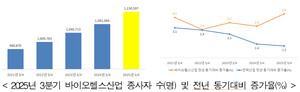 [의학신문·일간보사=정광성 기자] 올해 3분기 바이오헬스산업 종사자 수가 113만1000명으로 전년 동기대비 4.6% 증가한 것으로 나타났다. 전체 산업 종사자 증가율(+1.2%)보다 3.3% 높은 수준이다.한국보건산업진흥원(원장 차순도)은 29일 발표한 ‘2025년 3/4분기 바이오헬스산업 고용동향’에서 이같이 밝혔다.바이오헬스제조업 종사자 수는 19만1000명으로 전년 대비 3.4% 증가했으며, 특히 화장품산업 증가율이 7.3%로 가장 높았다. 제약은 2.4%, 의료기기는 2.3% 증가했다. 전체 제조업 종사자가 0.1% 감소한