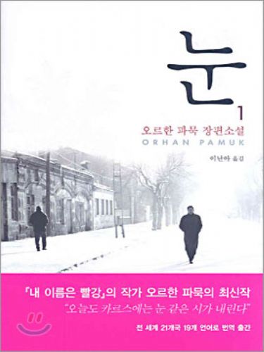 | 출판사 서평 | 터키에서 출간되는 책마다 베스트셀러를 기록하며 터키 소설사의 각종 기록을 경신하는 작가인 파묵이 『새로운 인생』(1994)으로 처음 서방 언론에 소개되었을 때, 《뉴욕 타임스》의 리뷰어들은 “동방에 새로운 별이 떠올랐다.”라며 흥분했다. 1998년에 출간된 『내 이름은 빨강』은 영국과 미국 아마존 베스트를 석권하고 35개국에 번역 출간되며 그를 명실상부한 세계 최고의 작가 대열에 올려놓았다. 이렇듯 문학적으로나 대중적으로나 큰 성공을 거둔 파묵의 다음 발걸음이 어디로 향할지 모두가 궁금해하는 가운데 그는 자신의 소설 인생 처음으로 이스탄불이 아닌 다른 곳, 터키 동북부의 국경 도시 카르스를 무대로 하는 이야기를 구상한다. 그의 트레이드마크와도 같은 특성들, 지적인 플롯과 세련되고 독창적인 서사기법, 그리고 무엇보다도 타고난 작가들만이 갖는 이야기의 재능은 『눈』에서도 여전하며, 더불어 전작들에서 보인 바 없는 긴박감 넘치는 빠른 사건 전개와 시적인 문체(주인공 카는 시인이다.)가 독자들에게 소설 읽는 즐거움을 선사한다. | |