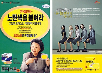 컬러마케팅으로 인지도를 확보한 후에는 경쟁품들과의 차별화를 위해 패치(트라스트)와 파스라는 제품 차별화 뿐 아니라 브랜드 이미지 차별화를 위해서 무릎에 집중하는 광고 컨셉을 선보였다.