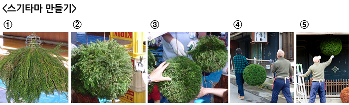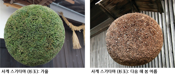 가을에 추수를 하여 거둬낸 햅쌀로 1년 간의 술 제조과정을 거쳐서 출하할 사케를 겨우내 빚어낸다. 즉 가을부터 다음해 봄을 거쳐서 다시 가을까지의 과정에서 삼나무 잎을 말아 만든 스기타마는 사케를 만드는 동안 양조장의 달력 같은 역할을 한다.