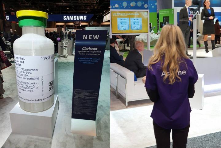 또한 GE헬스케어는 가돌리늄 기반의 MRI 조영제 '클라리스캔' 제품을 대폭 확대해 전시했는데 소모품임에도 불구하고 시선을 사로잡는 효과와 관람객들에게 귀엽다(?)는 평가까지 받으며 큰 관심을 받았다.