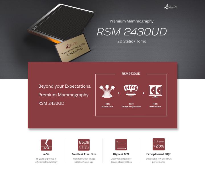 먼저 지난 2015년 여성헬스케어 맘모 분야에서 업계 최초로 아날로그 엑스레이에 적용해 디지털 시스템으로 변환할 수 있는 제품군으로 센세이션을 일으켰던 ‘RSM C’의 성능을 향상한 제품인 RSM 2430C2를 선보였다.