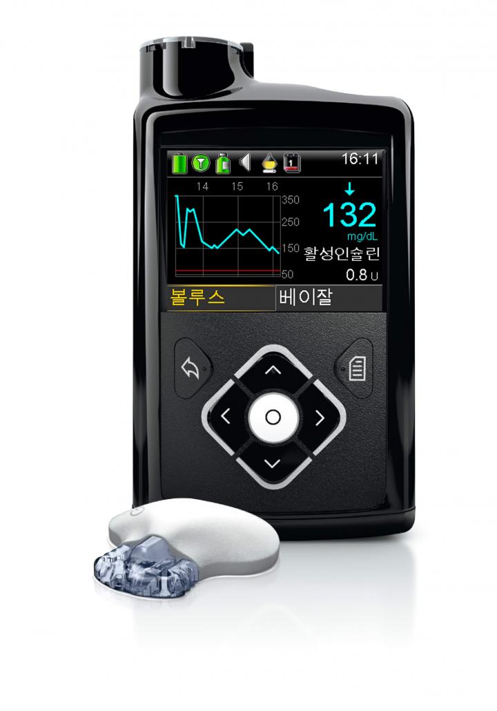 ‘미니메드640G 시스템’은 연속혈당측정 시스템을 연동하여 사용할 수 있는 인슐린자동주입기로, 혈당의 변화에 따라 인슐린 주입을 자동으로 정지하는 기능이 있어 저혈당 발생을 줄일 수 있다.