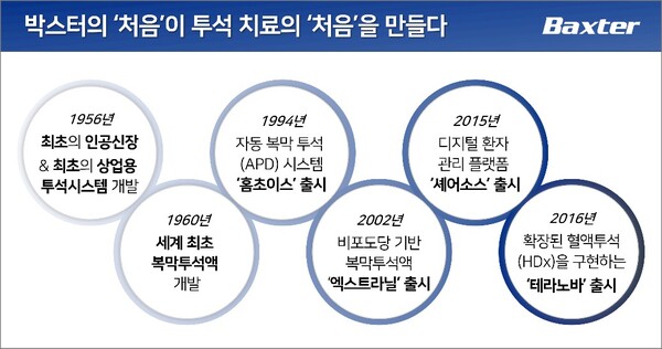 [의학신문·일간보사=오인규 기자] 최초의 인공신장 상용화부터 시작해 70년이 넘는 시간 동안 신장 치료 연구를 개척해 온 박스터(Baxter International)는 콩팥병을 가진 환자들을 위한 혁신적인 치료 옵션을 연구 개발해 왔다.