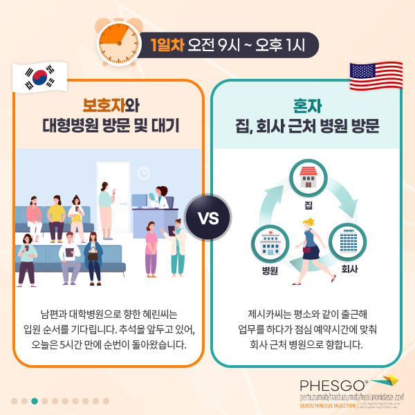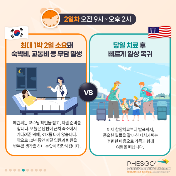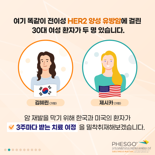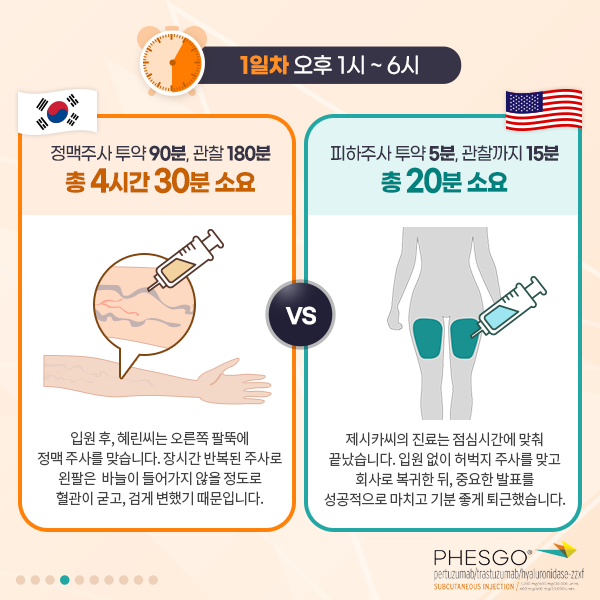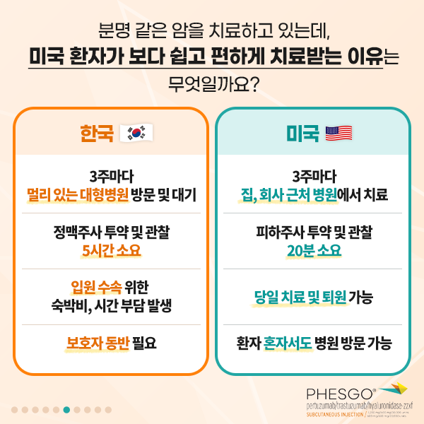똑같은 HER2 양성 전이성 유방암 환자라도, 미국에서 좀 더 편안하고 간편하게 HER2 양성 유방암 치료가 가능한 이유는 피하주사제 ‘페스코’를 사용하기 때문이다.