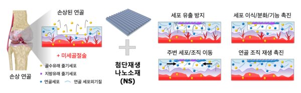 해당 연구는 연골을 재생시킴으로써 손상된 무릎연골을 치료할 수 있도록 첨단재생 나노소재라는 새로운 개념을 제안했다는 점에서 주목받고 있다. 생분해성 바이오소재를 이용하여 제작된 나노소재는 연골조직의 세포외기질 구조와 유사한 나노 패턴을 가지고 있어 연골 재생을 유도할 수 있다.