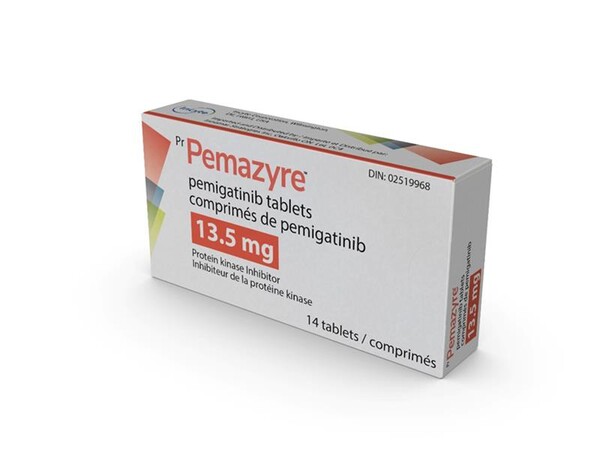 페마자이레는 1회 이상의 전신치료를 받은 성인에서 섬유아세포성장인자 수용체 2의 융합 또는 재배열이 존재하는 국소진행성 또는 전이성 담관암을 적응증으로 한다.