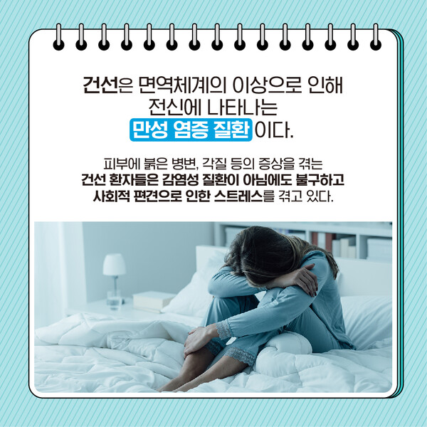 피부에 붉은 병변, 각질 등의 증상을 겪는 건선 환자들은 전염성 질환이 아님에도 불구하고 사회적 편견으로 인한 스트레스를 겪고 있다.