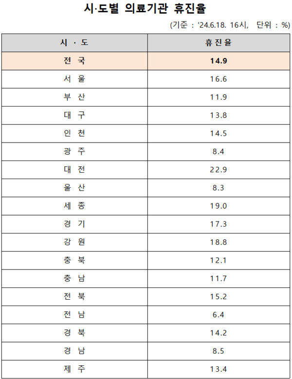 다만 의료기관의 최종 휴진율은 각 지자체의 현장점검 이후 변동 가능성이 있다.