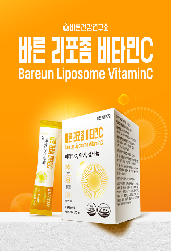 [의학신문·일간보사=유은제 기자]참약사(대표 김병주)의 가맹 약국에서 만날 수 있는 건강기능식품 브랜드 '바른건강연구소'에서 ‘바른 리포좀 비타민C’를 출시했다. 비타민C를 인지질로 감싼 리포좀 형태로 만들어 생체 인지질과 같은 구조를 통해 비타민C 체내 흡수율을 높인 리포좀 제형 기술이 적용된 제품이다.