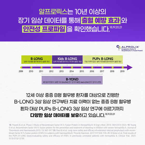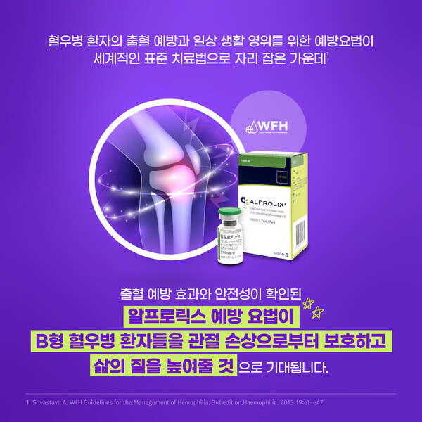 혈우병 환자의 출혈 예방과 일상생활 영위를 위한 예방요법이 세계적인 표준 치료로 자리 잡은 가운데, 출혈 예방 효과와 안전성이 확인된 알프로릭스 예방요법이 B형 혈우병 환자들을 관절 손상으로부터 보호하고 삶의 질을 높여줄 것으로 기대된다.