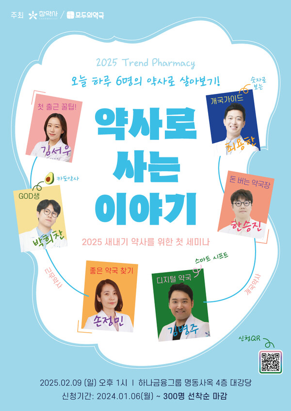 [의학신문·일간보사=유은제 기자]참약사(대표 김병주)와 ‘약사 서비스’ 모두의약국(대표 이걸·손정민)이 공동으로, 오는 2월 9일 하나금융그룹 명동사옥에서 새내기 약사를 위한 ‘2025 TREND PHARMACY’ 세미나를 개최한다.