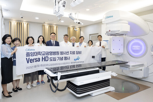 [의학신문·일간보사=오인규 기자] 정밀방사선의학 분야 선도기업 엘렉타코리아(대표 권창섭)는 중앙대광명병원에 고성능 방사선 암 치료 선형가속기 ‘엘렉타 버사HD(Elekta Versa HD)’를 추가 공급하고 6일 병원에서 방사선종양학과와 장비 가동 기념식을 개최했다고 밝혔다.