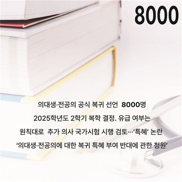 최근 의료계가 복귀 의사를 밝히며 사태는 진정 국면에 접어드는 듯하지만, 교육 정상화와 제도 개혁이라는 본질적 과제는 여전히 남아 있다.