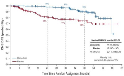 ADAURA 연구에 따르면, 완전 종양 절제술을 받은 1B-3A기 EGFR 변이 비소세포폐암 환자에서 타그리소군은 위약군 대비 질병 재발 또는 사망 위험을 73% 낮췄다.