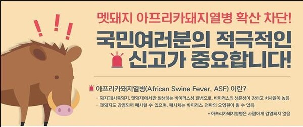 [의학신문·일간보사=이정윤 기자] 기후에너지환경부(장관 김성환)는 겨울철 번식과 먹이활동으로 야생멧돼지의 활동반경이 커지고, 바이러스 생존기간이 길어지는 등 아프리카돼지열병(ASF) 확산 위험이 높아짐에 대비하여 중점관리 대책을 마련하고, 관련 표준행동지침(SOP)도 개정하여 11월 14일부터 이를 시행한다고 밝혔다.